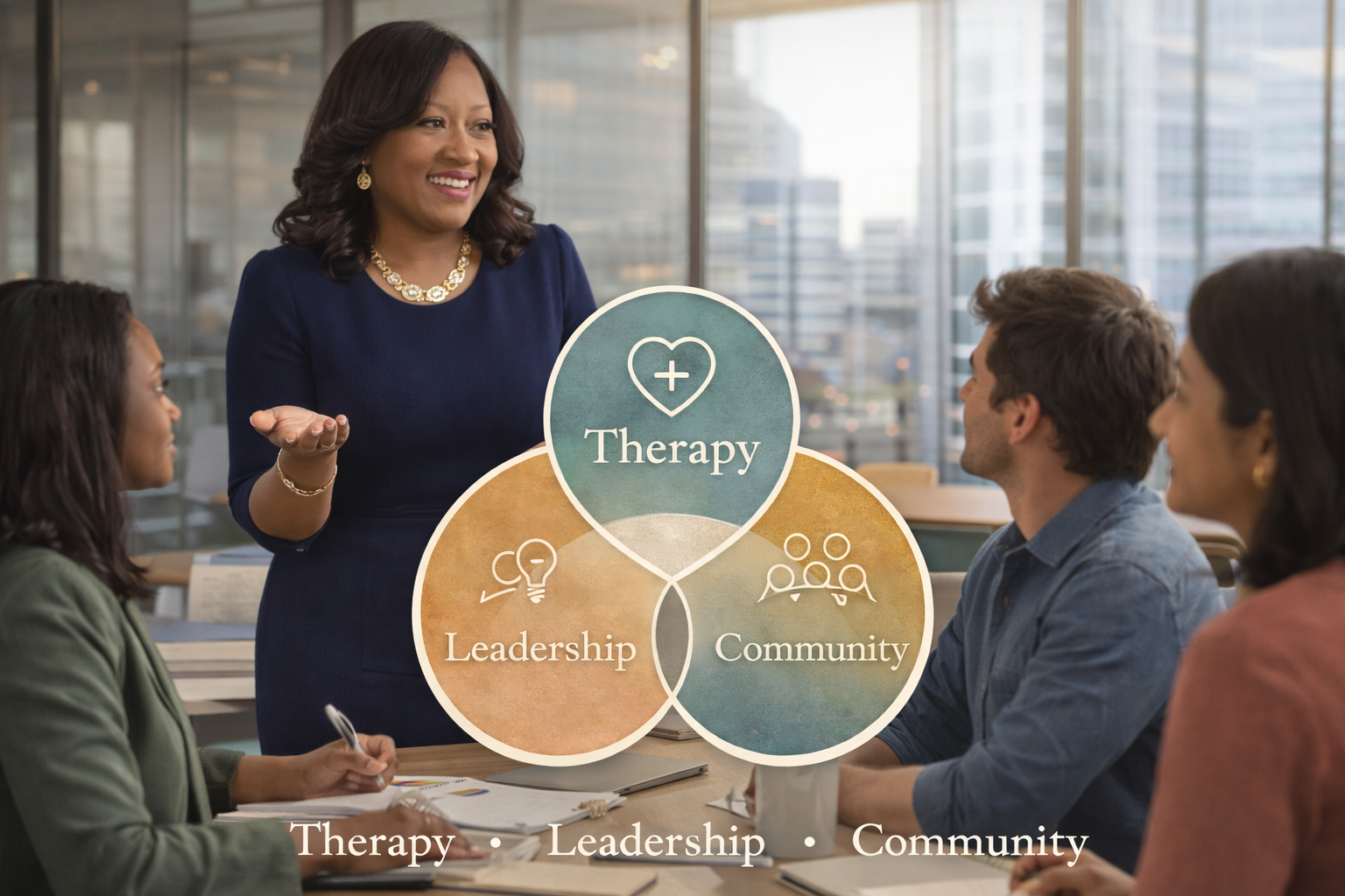 Whether I am sitting with a therapy client, speaking to a room of leaders, or helping an organization design a new strategy, my goal is the same — to help people move forward with greater clarity, compassion, and courage.